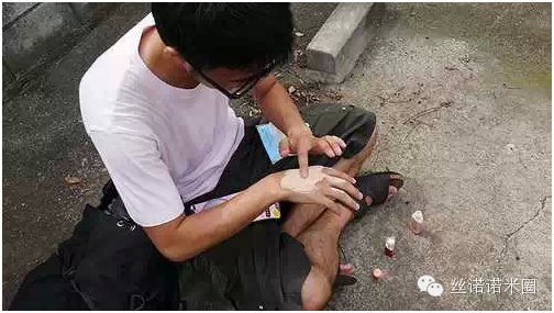 这类场景的难点在于,怎么让露出来的手像女朋友的手?所以就要用到粉底和指甲油了!