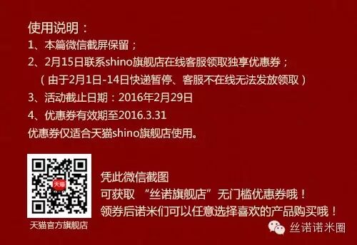 识别二维码进入“丝诺天猫旗舰店”联系在线客服领取吧!!!